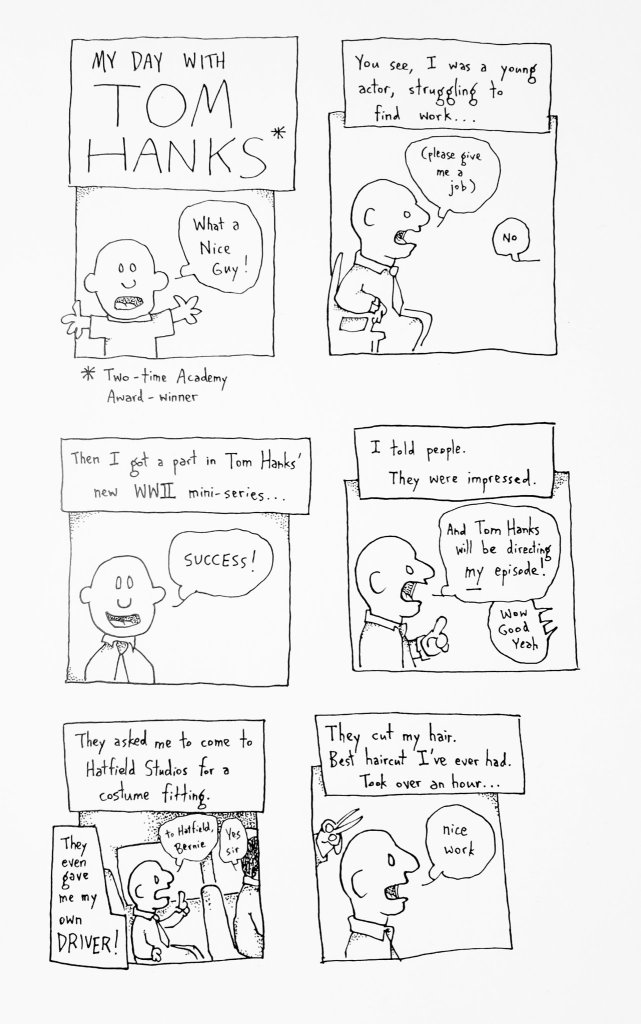 And in obscene detail too! Not only do we see Connor track down various casting people who were involved in the process of getting him in and out of Band of Brothers, he also digs up relevant relics of his past, including a comic strip he drew shortly after the incident which was a recreation of his Band of Brothers experience.